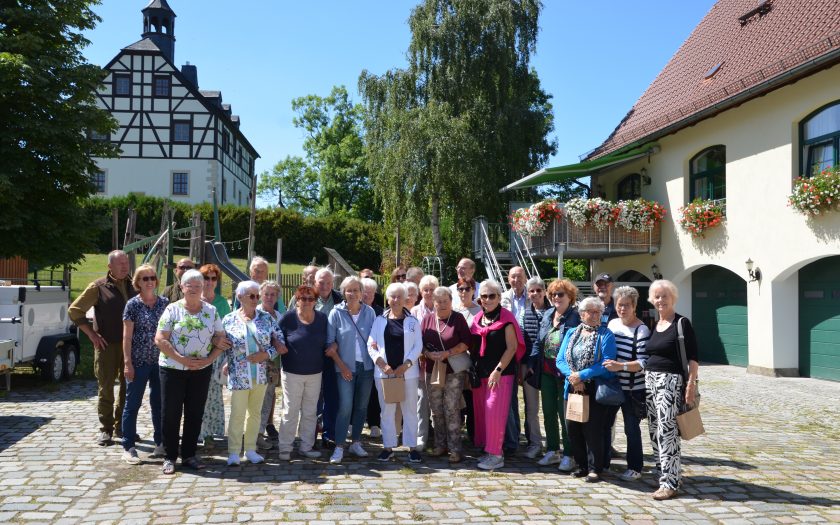 Am nächsten Tag besuchten wir die bekannte Schaustickerei Plauener Spitze und danach ging es weiter nach Klingenthal zur Vogtlandarena. Mit der Erlebnisbahn fuhren wir hoch zur Sprungschanze, der modernsten Großschanze Europas und der Fliegenden Kapsel. Nach einem Mittgessen in einer Berghütte auf dem Aschberg fuhren wir in den Musikwinkel nach Markneukirchen in „Hüttels Musikwerkausstellung“. Hier wurden uns alte Spieldosen, Grammophone und Kirmesorgeln vorgestellt und Mitsingen war erlaubt bzw. gern gehört.